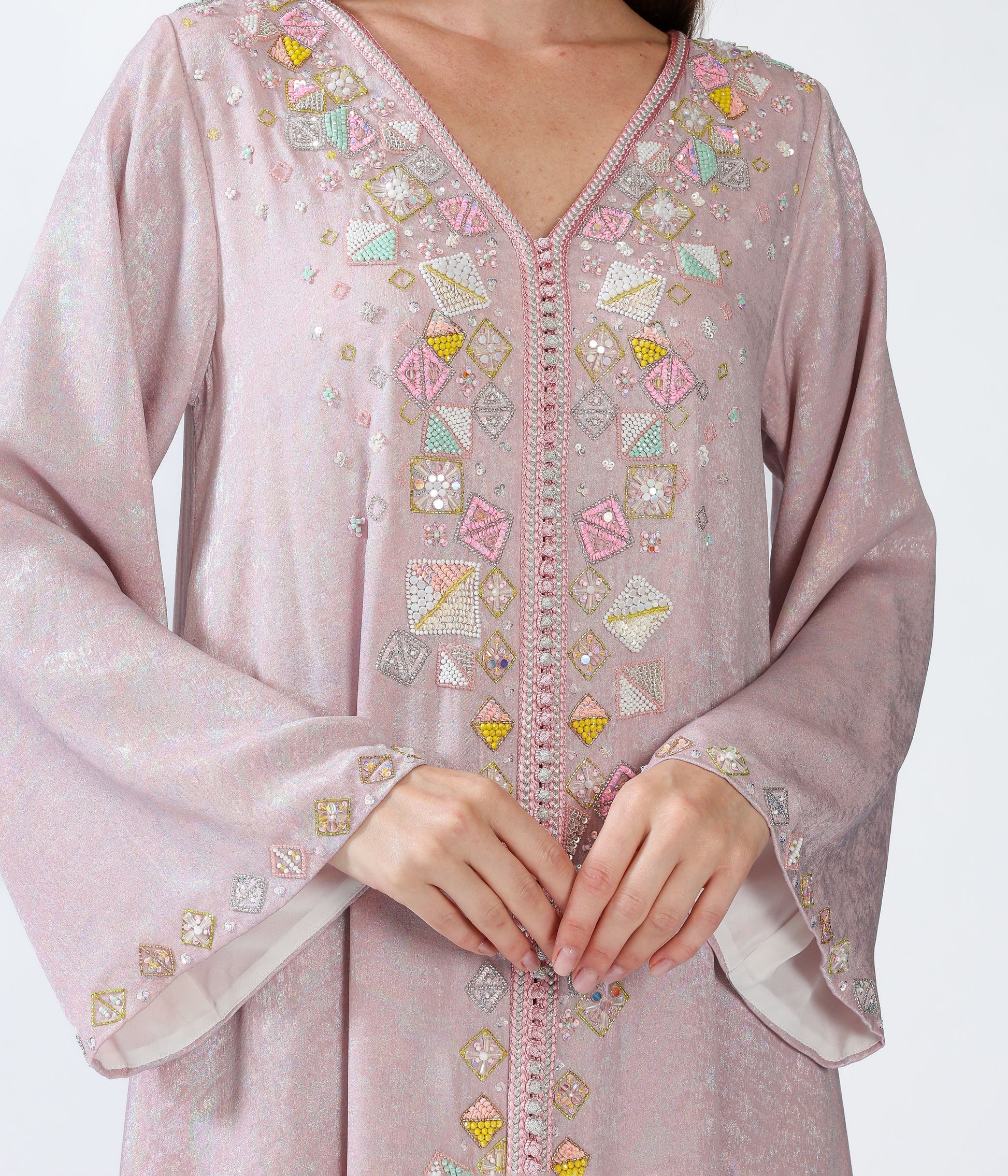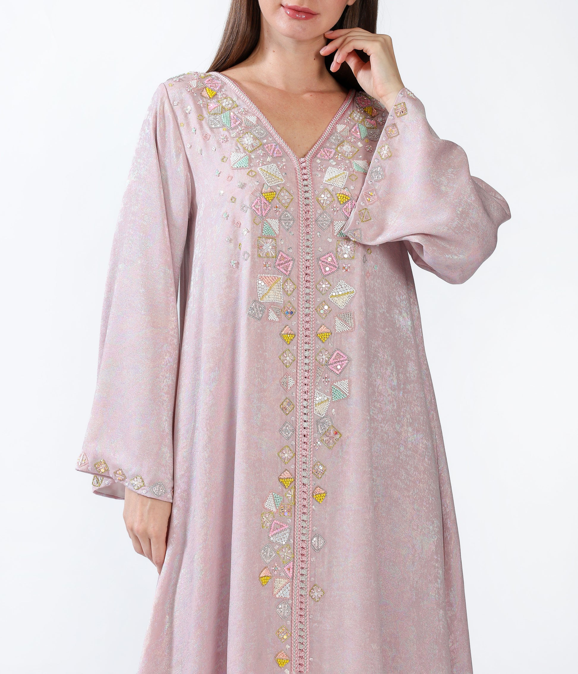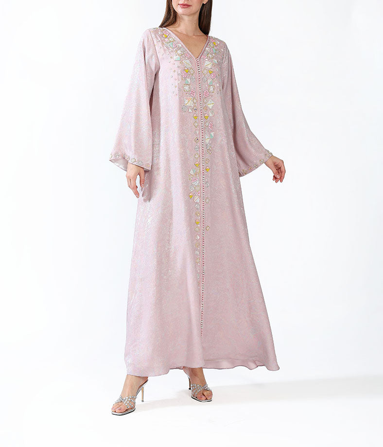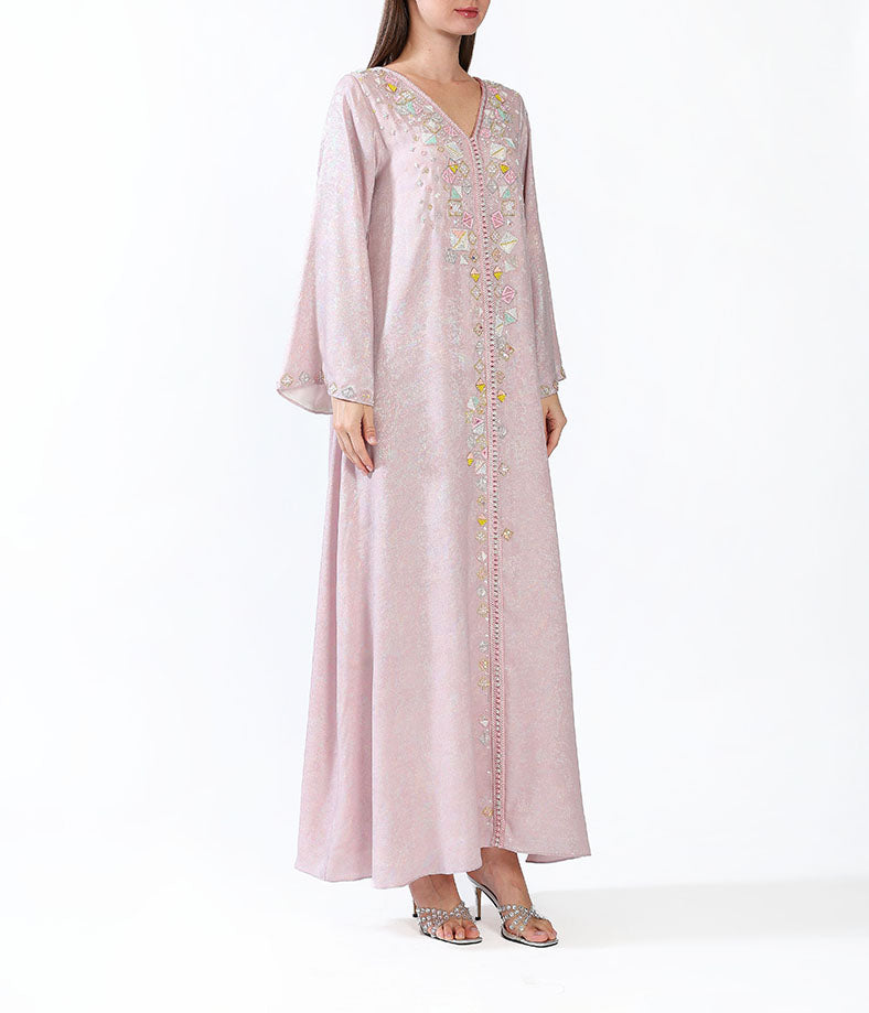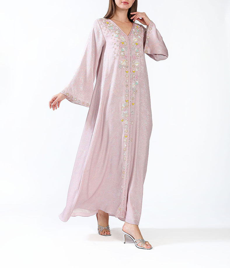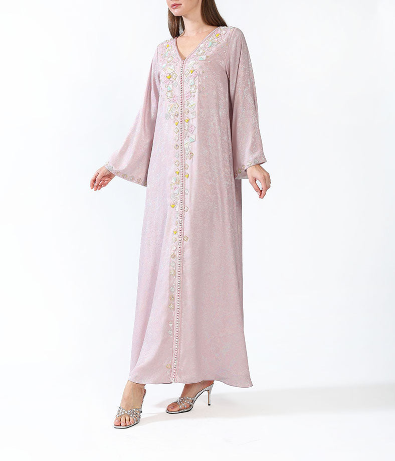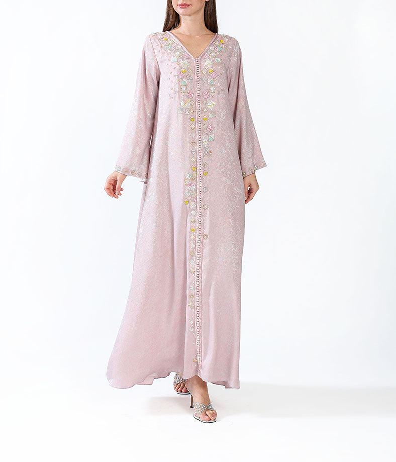 Metallic morrocan kaftan with handmade embellishments.