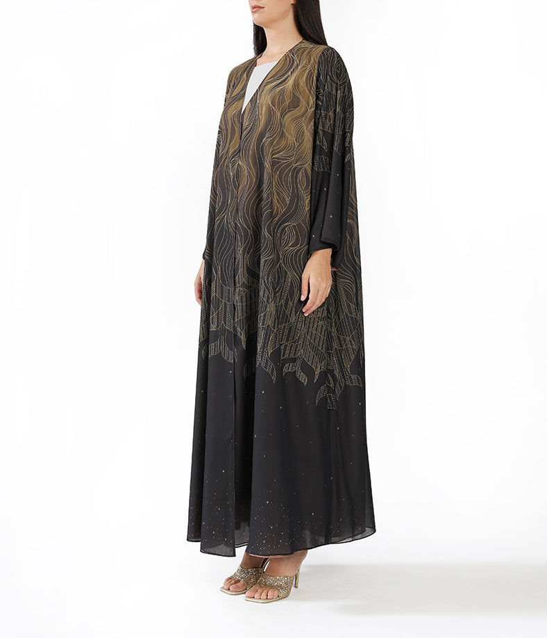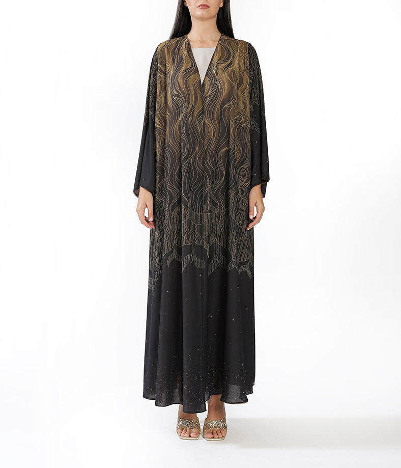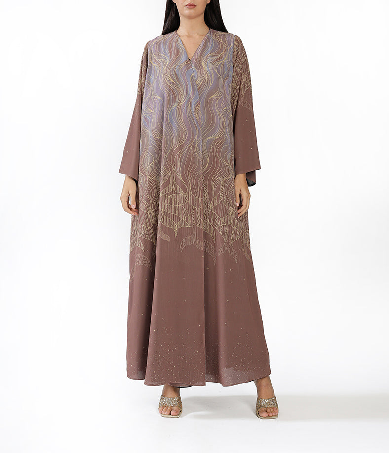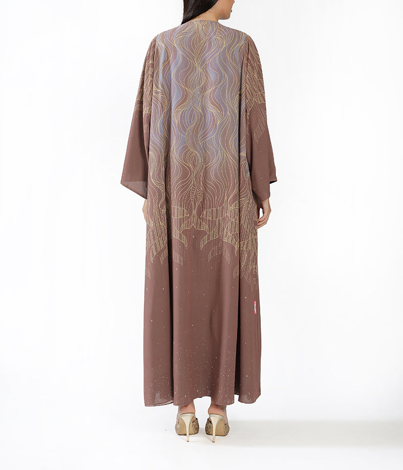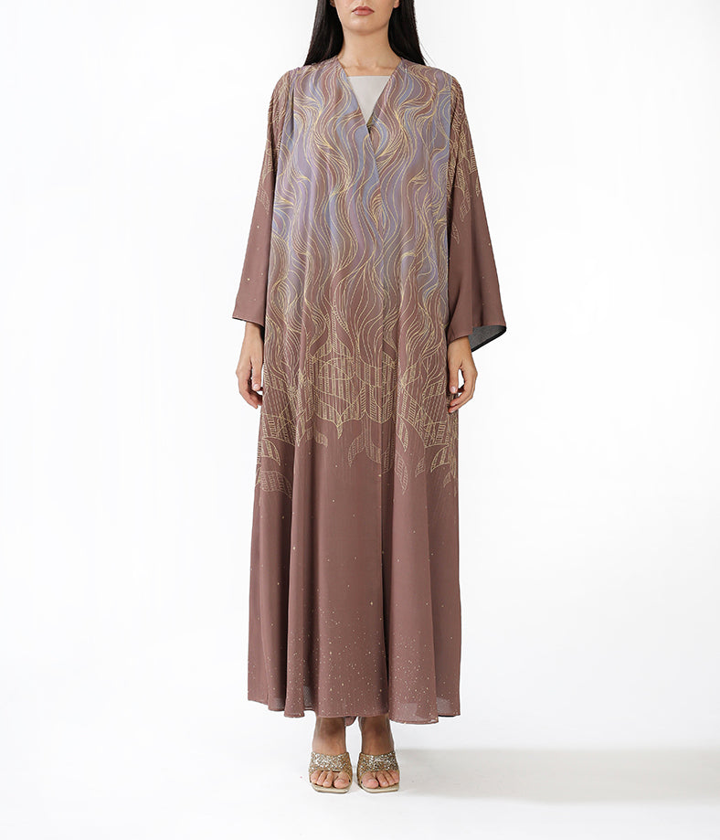 Reversible Dark Brown and light Brown Ombre  Abaya with Minimal Line Print inner dress not included.