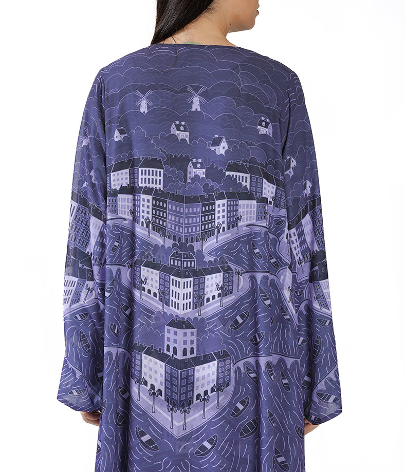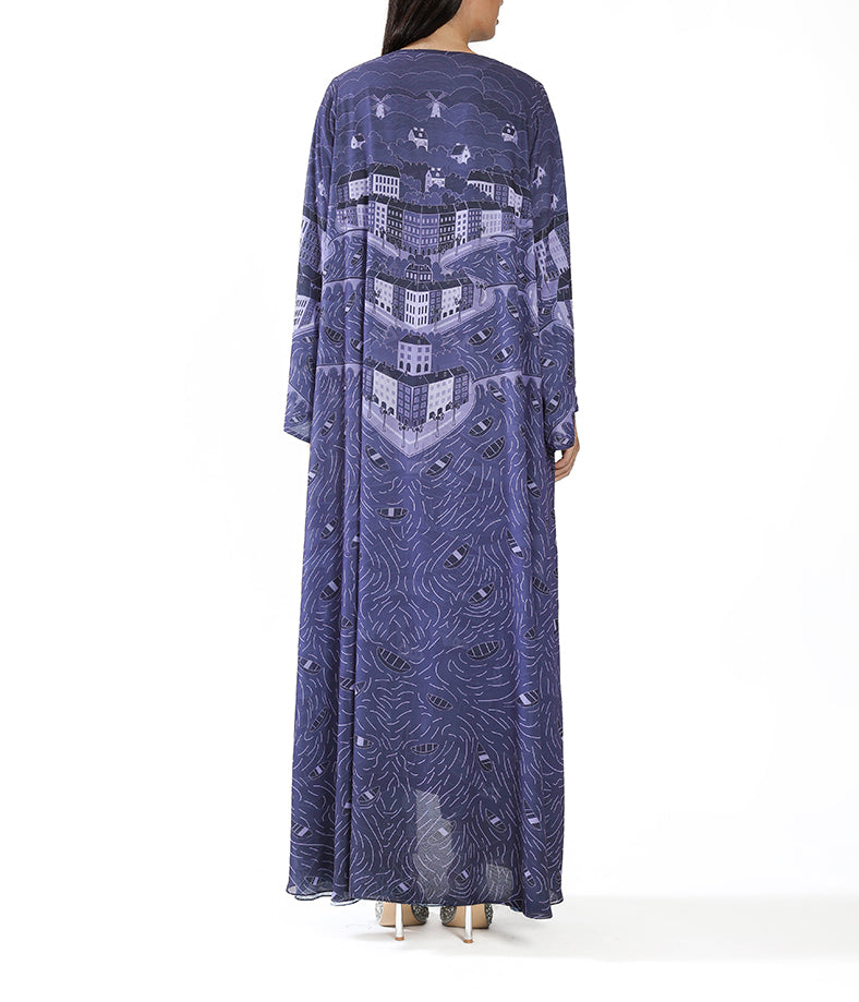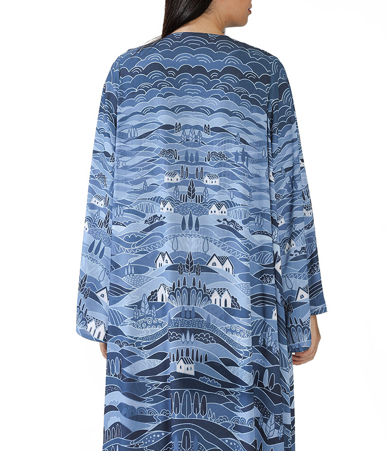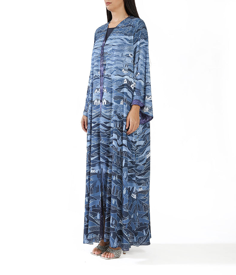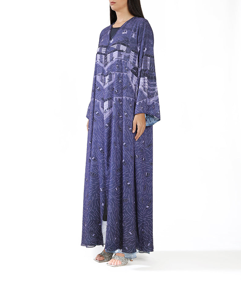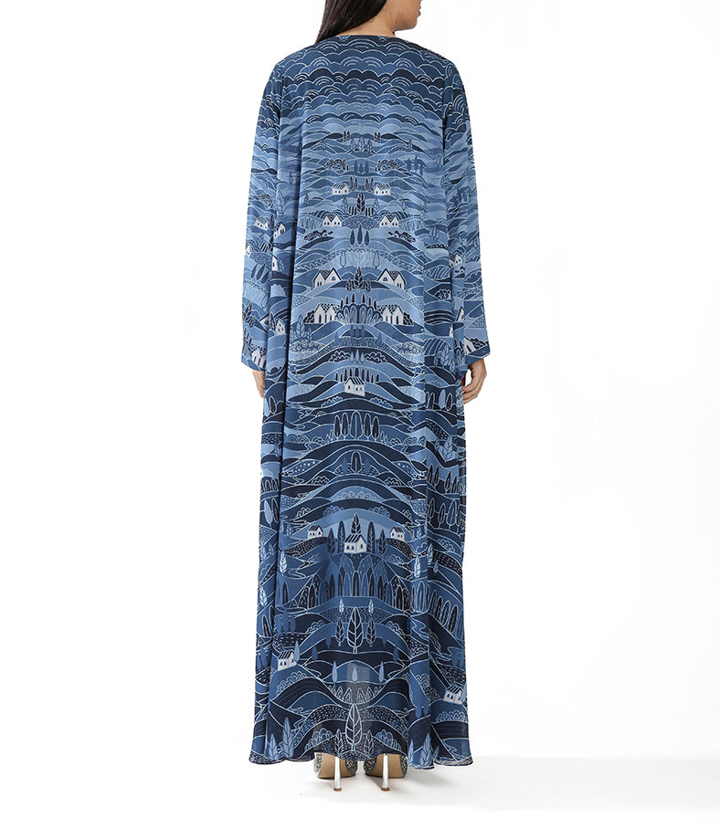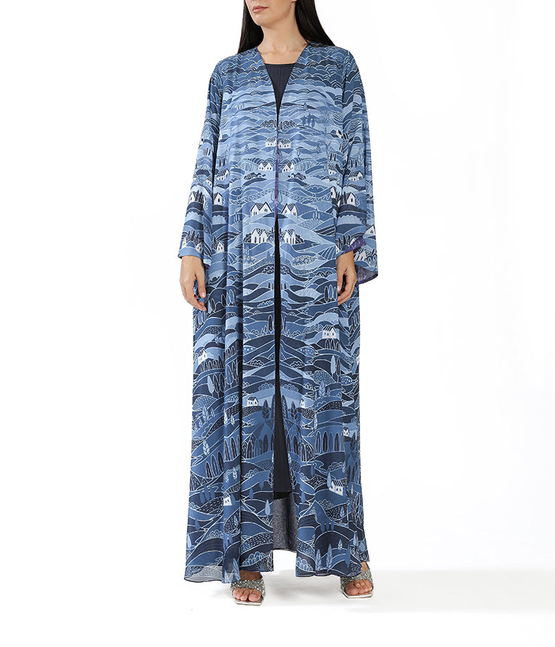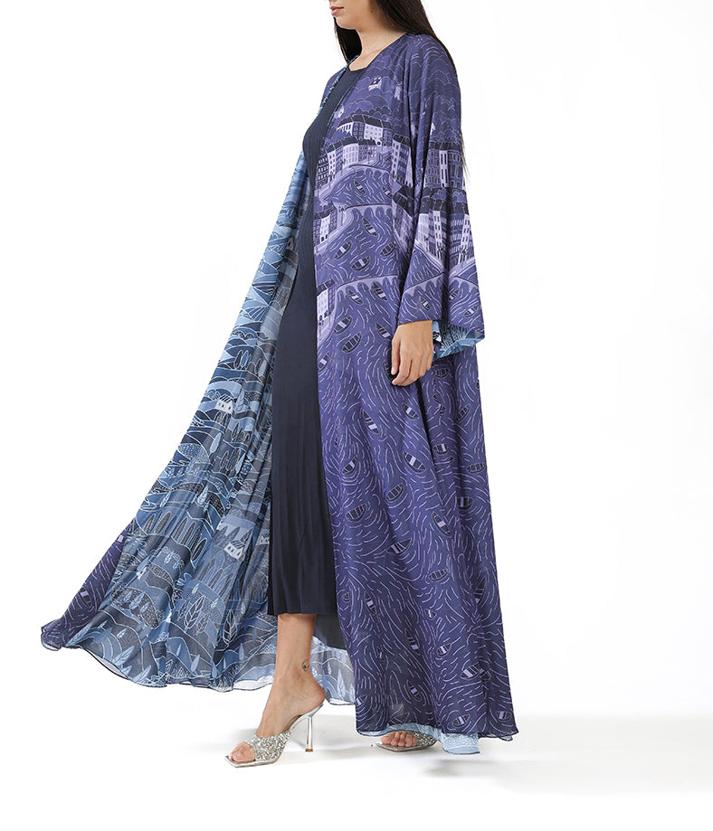 Reversible Ombre Abaya in Dark and Navy Blue with Line Prints with  Inner Dress