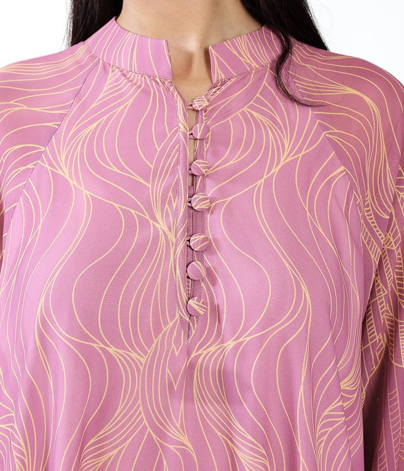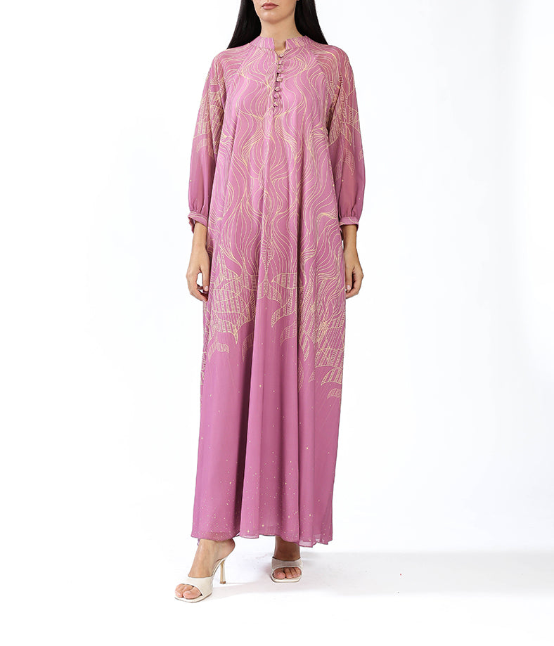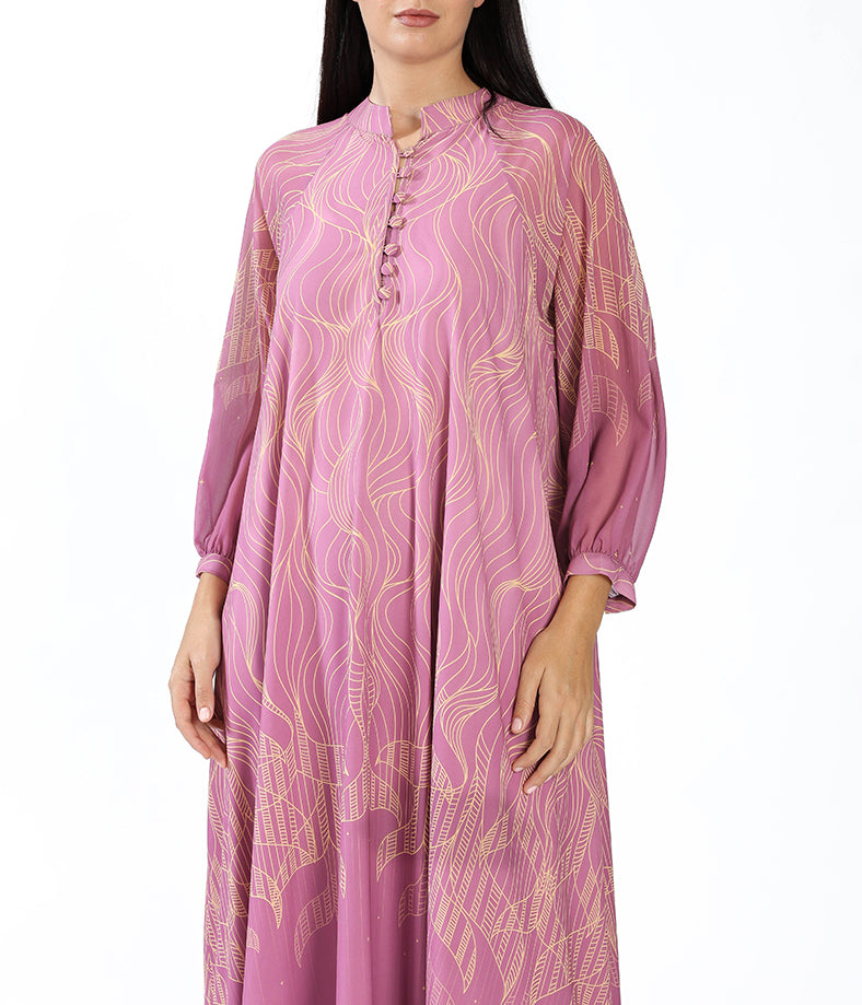 Persian Pink Customized Chiffon Linear Print Design Jalabiya.