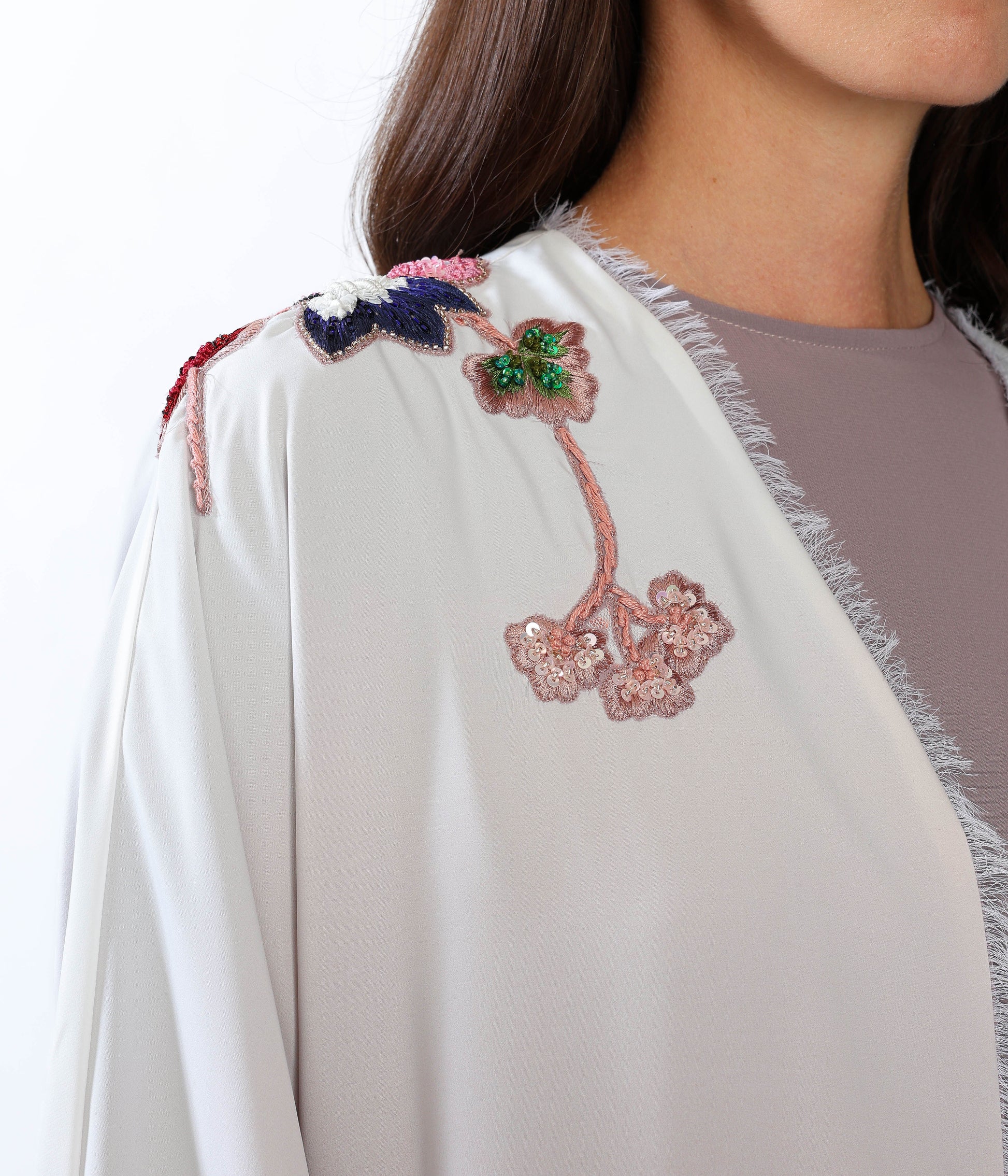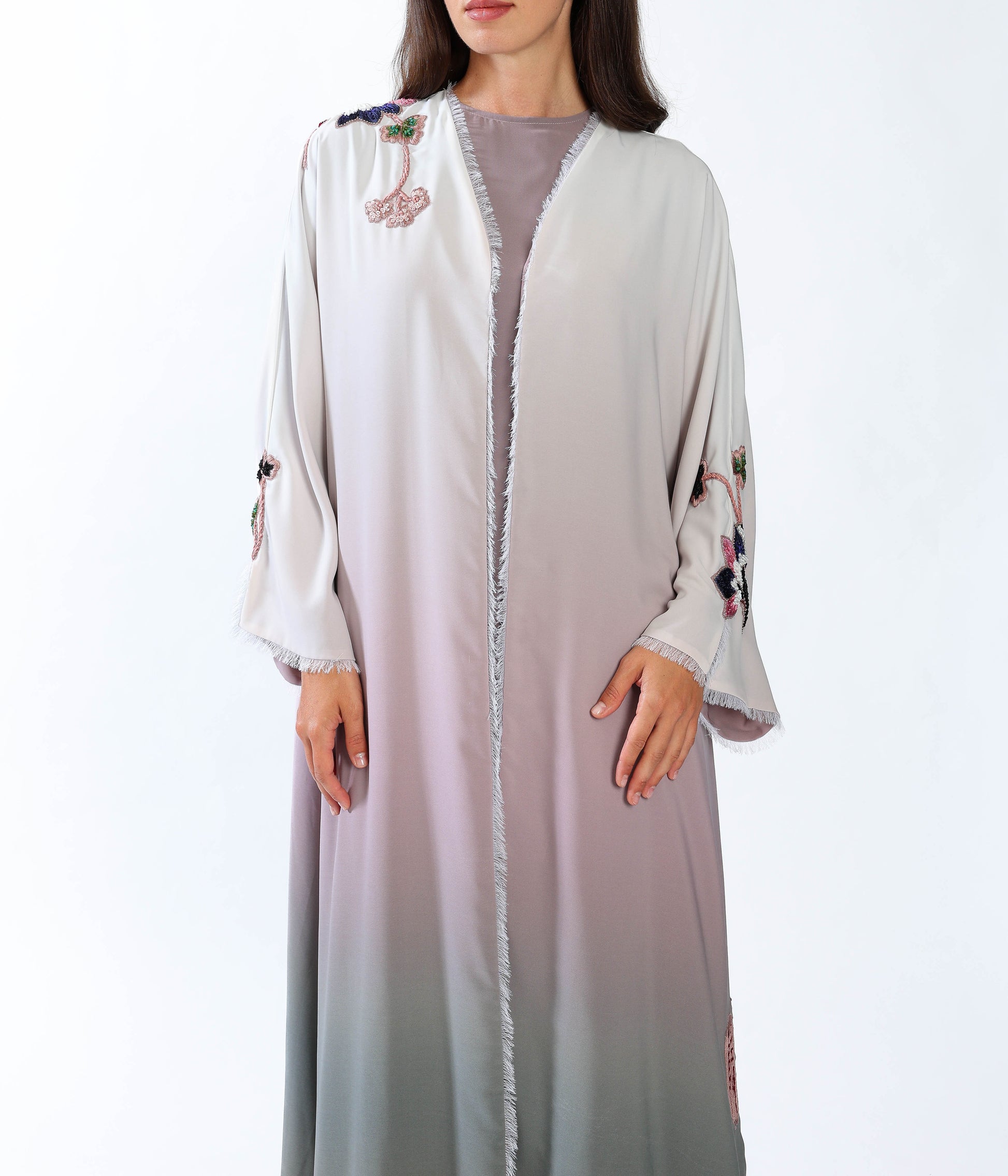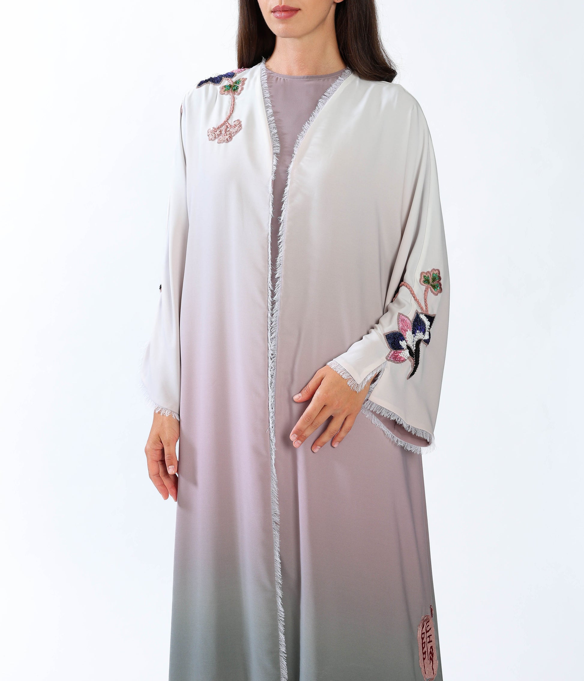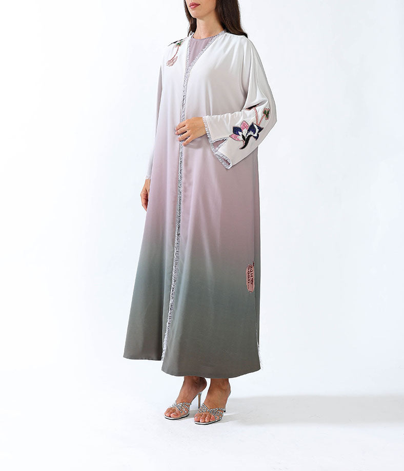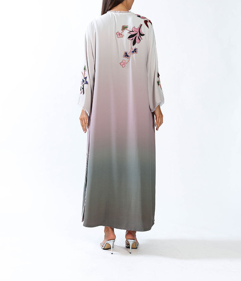 Hand embroidered Lilly on gradient silky crepe.